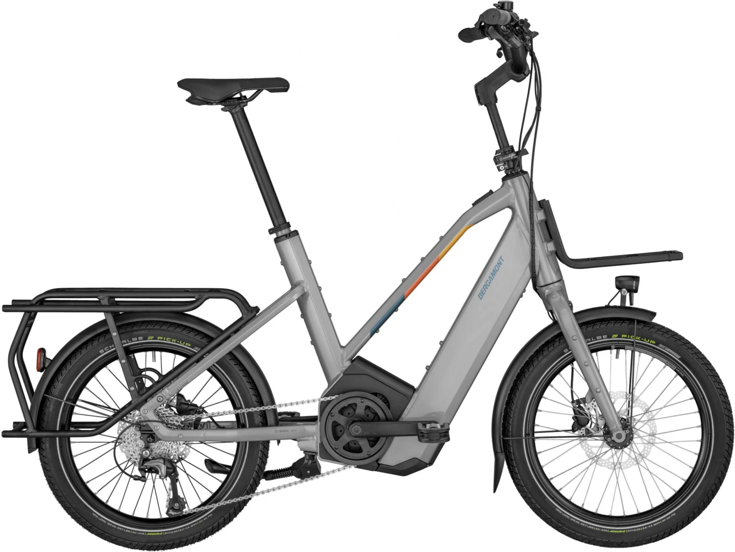 A compact and extremely manoeuvrable cargo bike, actually a contradiction in terms – not so with the new Hans-E from Bergamont. Equipped with the Performance Line Smart System motor, the 20″ e-bike has a sturdy aluminium frame, an integrated 500Wh battery, a Shimano 10-speed drive and 2 sturdy luggage racks. So that the whole family can ride the Hans-E, this e-bike has a 450mm long seat post and an individually adjustable stem. Hydraulic Shimano disc brakes, puncture-proof Schwalbe tyres and a Busch&Müller lighting system ensure the necessary safety in road traffic.
