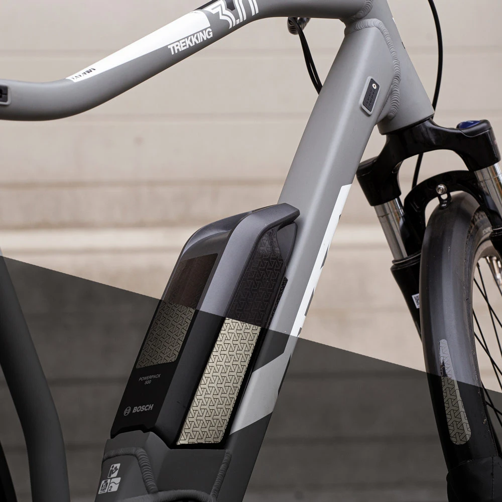 Das Reflective Battery Kit von FAHRER beinhaltet 7 Reflektoren in der Form von Aufklebern. Diese sind mit dem Bosch PowerPack Rahmenakku kompatibel. Wenn die Reflektoren angestrahlt werden, ist Ihr E-Bike im Dunklen gut zu erkennen. So sorgen die reflektierenden Aufkleber für mehr Sicherheit.
