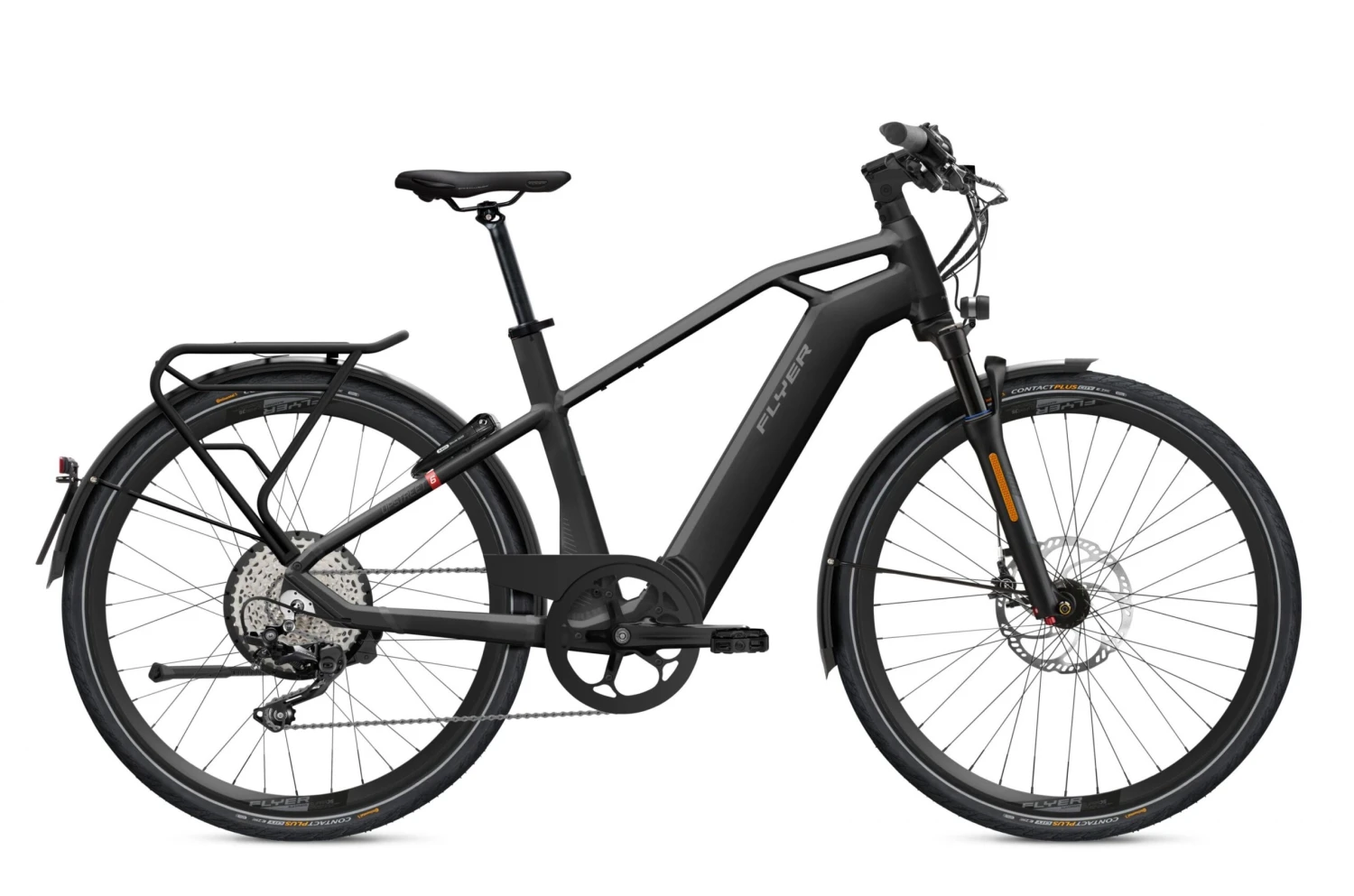 The Flyer Upstreet6 7.10 high-speed e-bike offers a new kind of mobility. The Upstreet6 can cover long distances to work and commute as if it were flying. The quiet hub motor accelerates the S-pedelec rapidly up to 45 km/h. Thanks to the ample battery and powerful motor, a constantly high speed is effortlessly possible. Equipped with top lighting system, rear view mirror, mudguards and side stand, the Flyer Upstreet6 is best prepared for its daily work use.