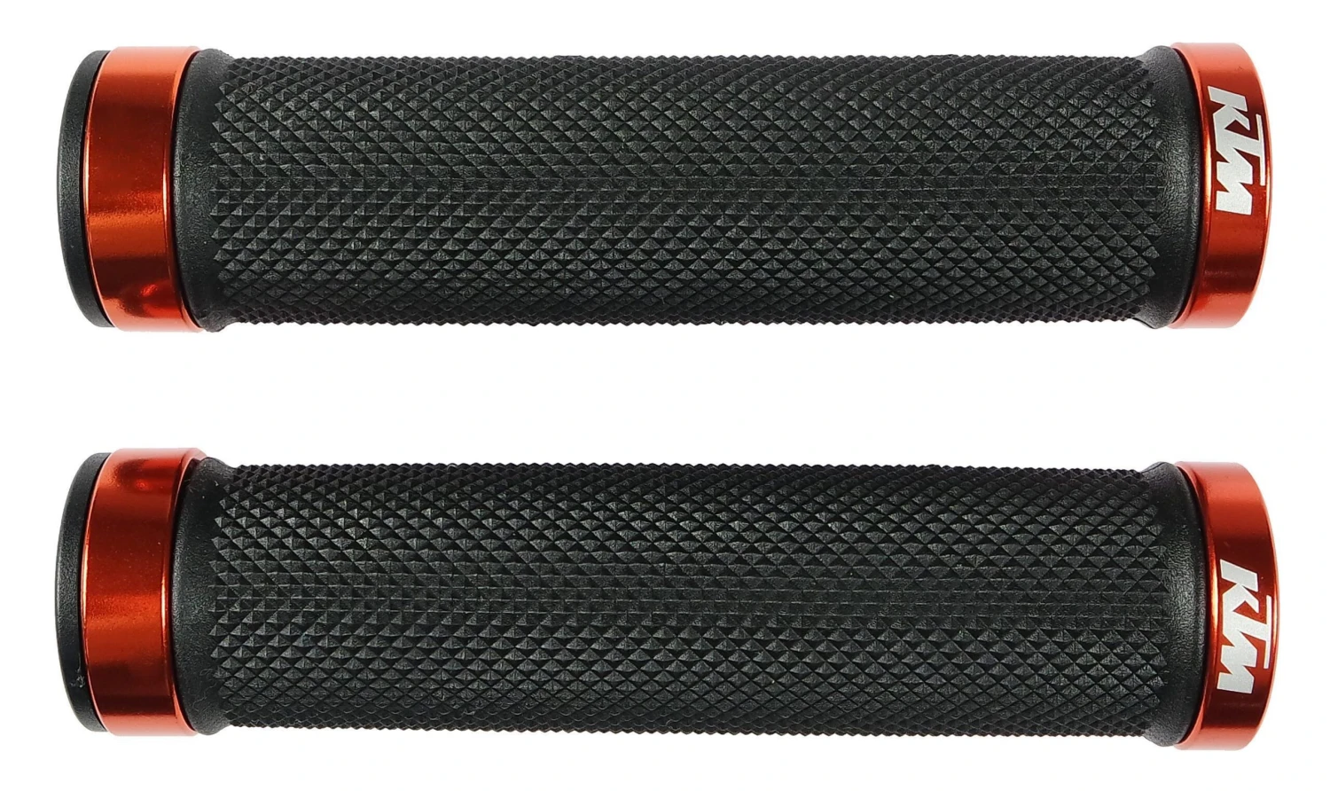 2 Klemmringe inkl. Schrauben ermöglichen das sichere Fixieren der Griffe am Lenker. Der Logoprint findet sich auf der inneren Aluminiumklammer der KTM-DIAMOND CLAMP Griff sowie auf den Endkappen.